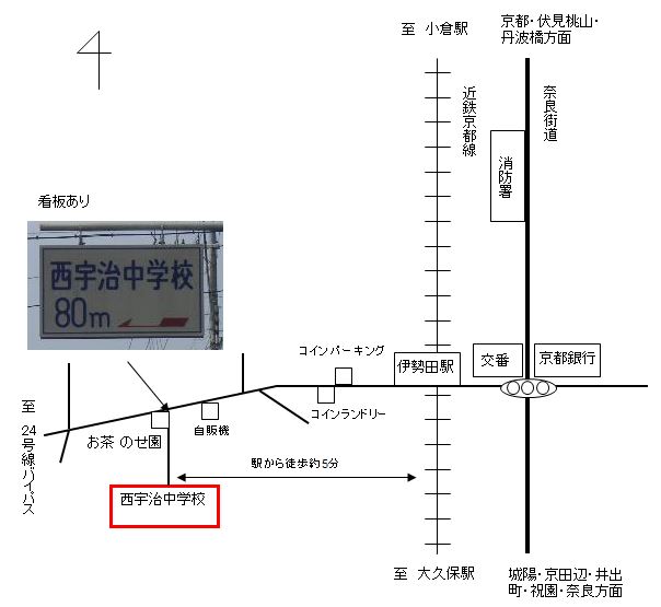 西宇治中学校80mと書いた看板付近の写真(夜はかなり暗くて見にくいのでご注意下さい)